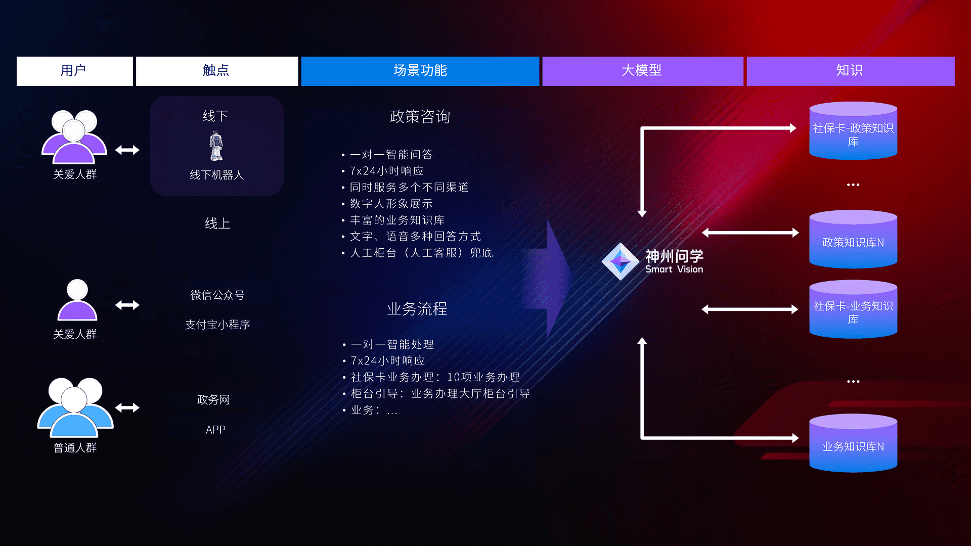 在服务大厅部署客服机器人,,在线上应用和小程序配置客服数字人,,,724小时为群众解答常规问题,,,客服机器人无法处理的,,,,转现场人工处理。。